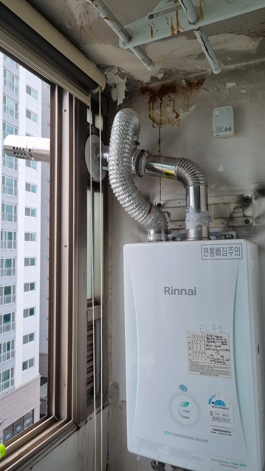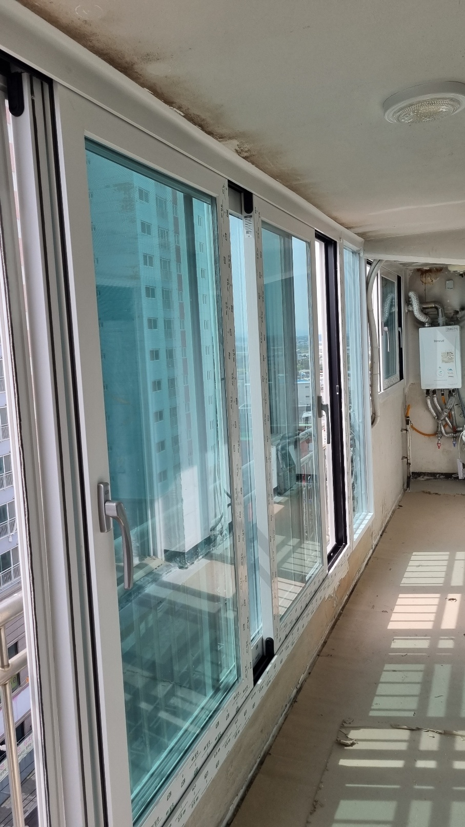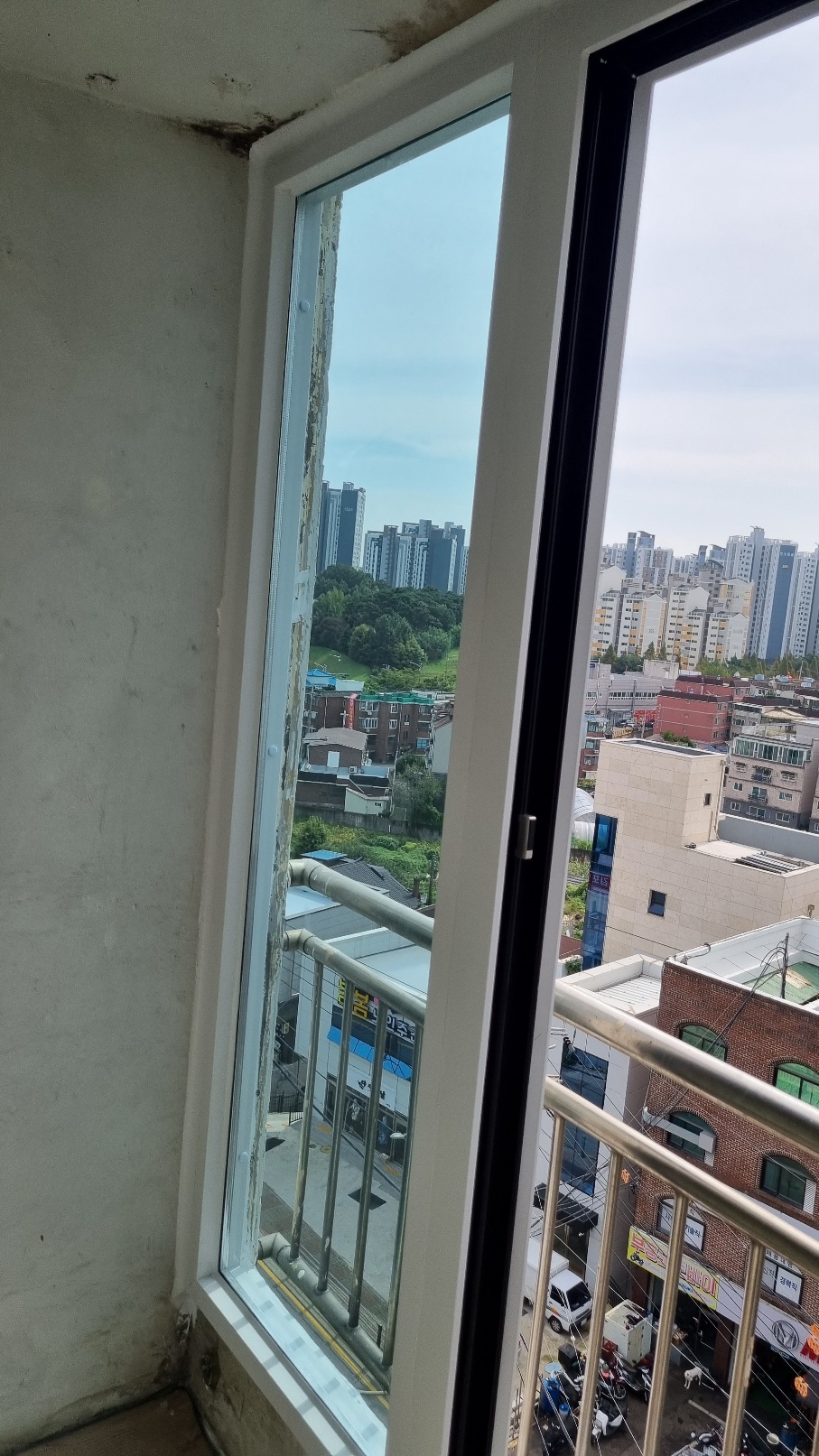 설명: 오래된 알루미늄 샷시로 결로와 곰팡이가 발생한 모습